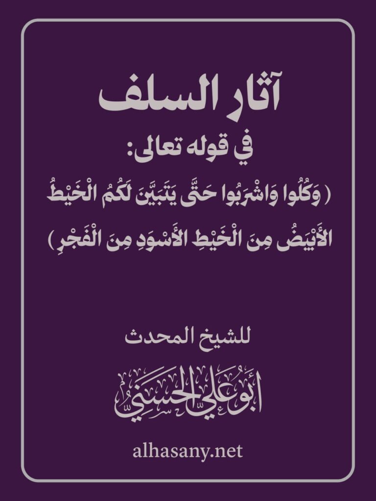 أثار السلف مع قوله تعالى [حَتَّى يَتَبَيَّنَ لَكُمُ الْخَيْطُ الْأَبْيَضُ مِنَ الْخَيْطِ الْأَسْوَدِ مِنَ الْفَجْرِ] [البقرة: 187].